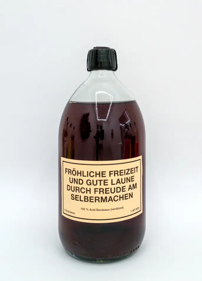 1 l Schramm, 2025bottles, liquids, stripping, sealing wax22,5 x 9 cm, 11 variants, each ed. of 3/3 + 1 ap