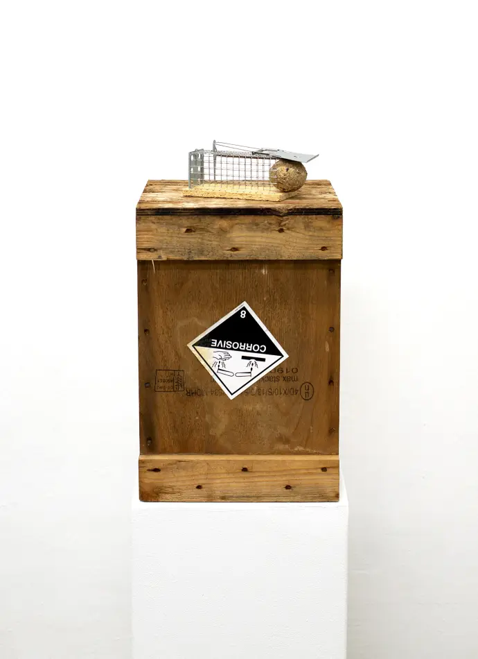 Corrosive, 2019found object, mousetrap, and fat balls49 x 28 x 28 cm