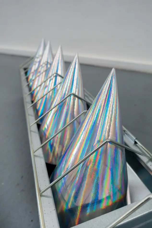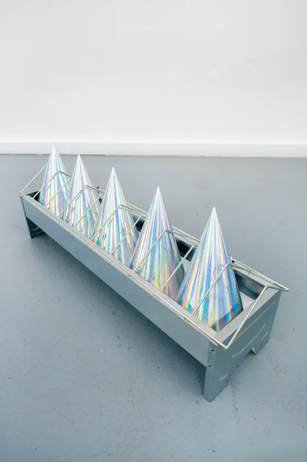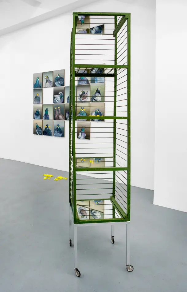 Reha Volière, 2023birdcage, mirror, and painted ceramics205 x 41 x 40 cm