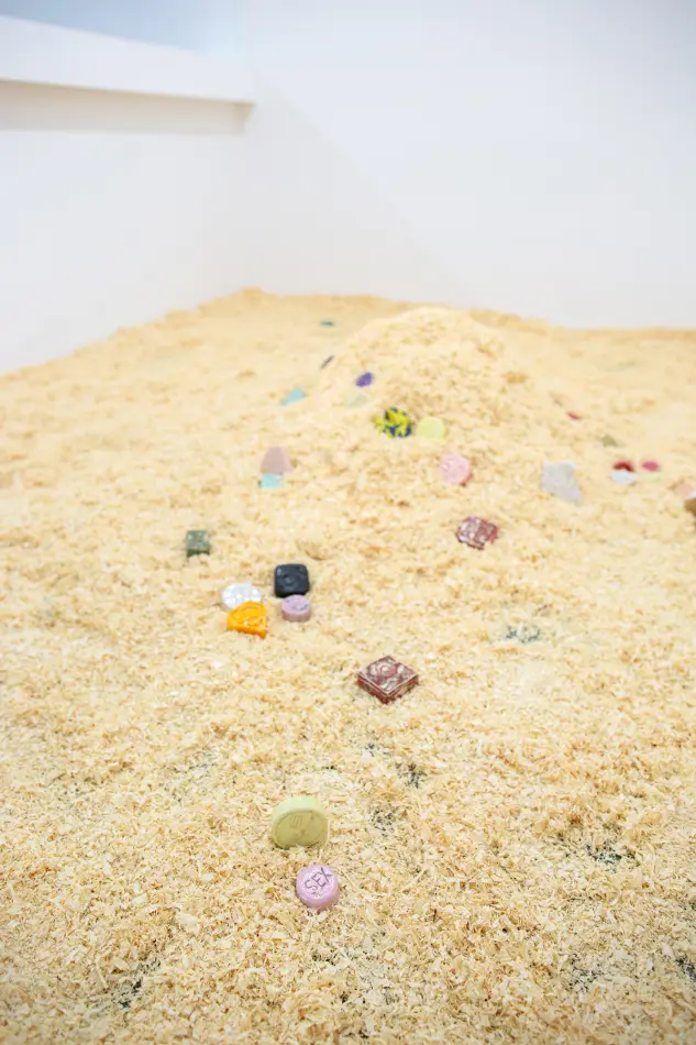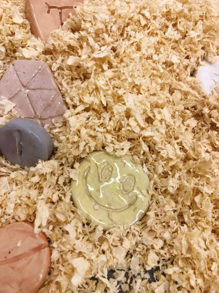 Kleine Schwemme, 2021glazed ceramics, sawdust, children's broomdimensions variable
