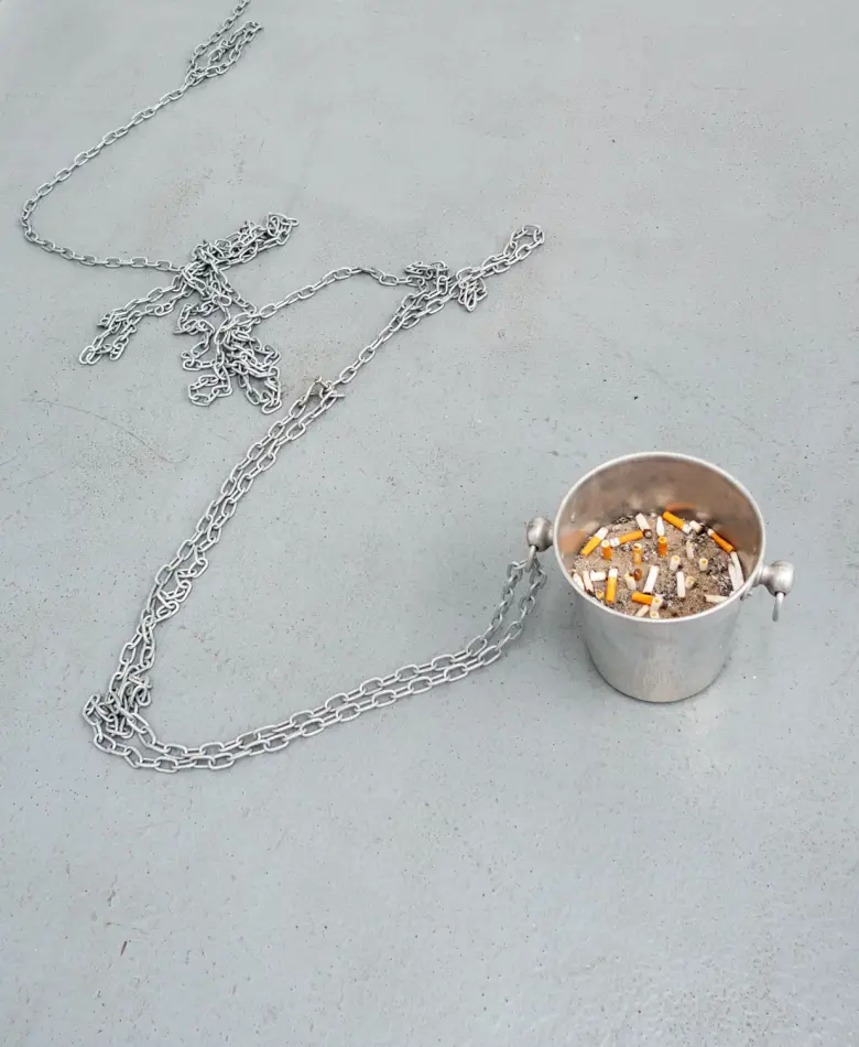 Kühler, 2023champagne cooler, sand, cigarette butts, and chaindimensions variable