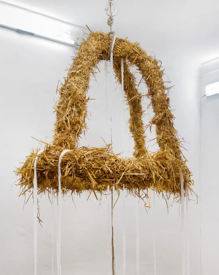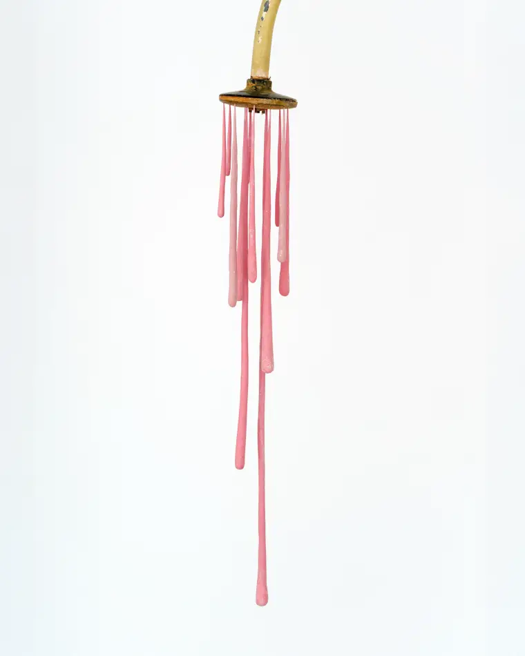 Untitled (Große Dusche), 2025found object, galvanized malleable iron, hemp, synthetic resin & pigments210 x 105 x 75 cm
