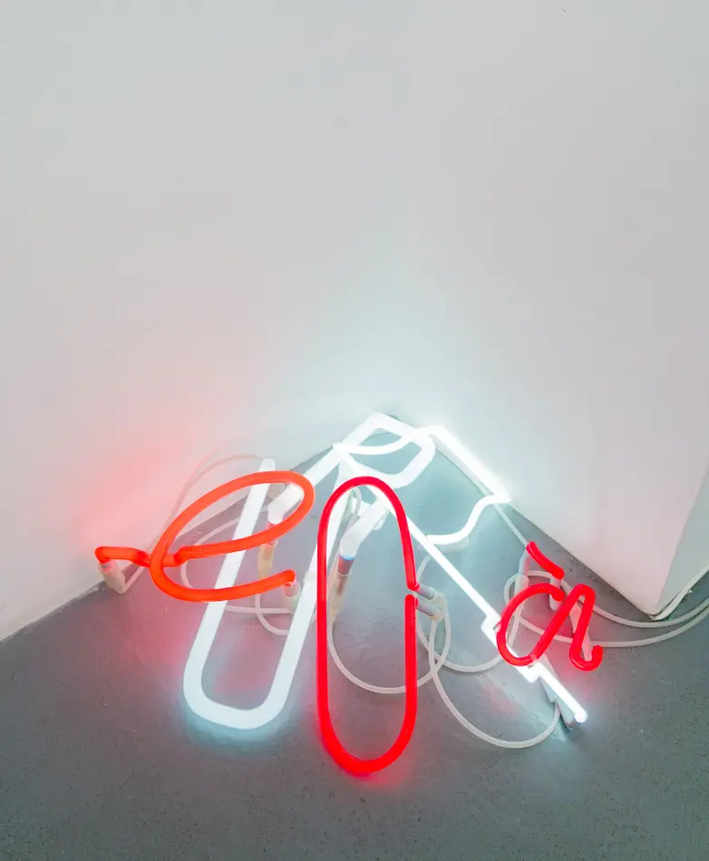 Meine Finsternis Licht macht, 2020two-pronged fork and neon lamp163 x 24 x 4 cm
