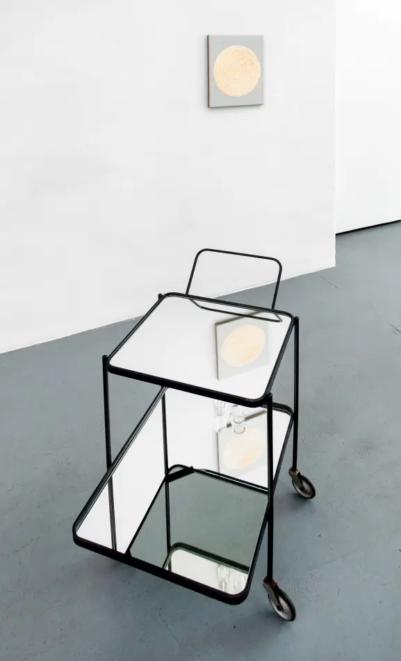 Freier Fall, 2023tea trolley, mirror, shot glasses50,5 x 73,5 x 41 cm