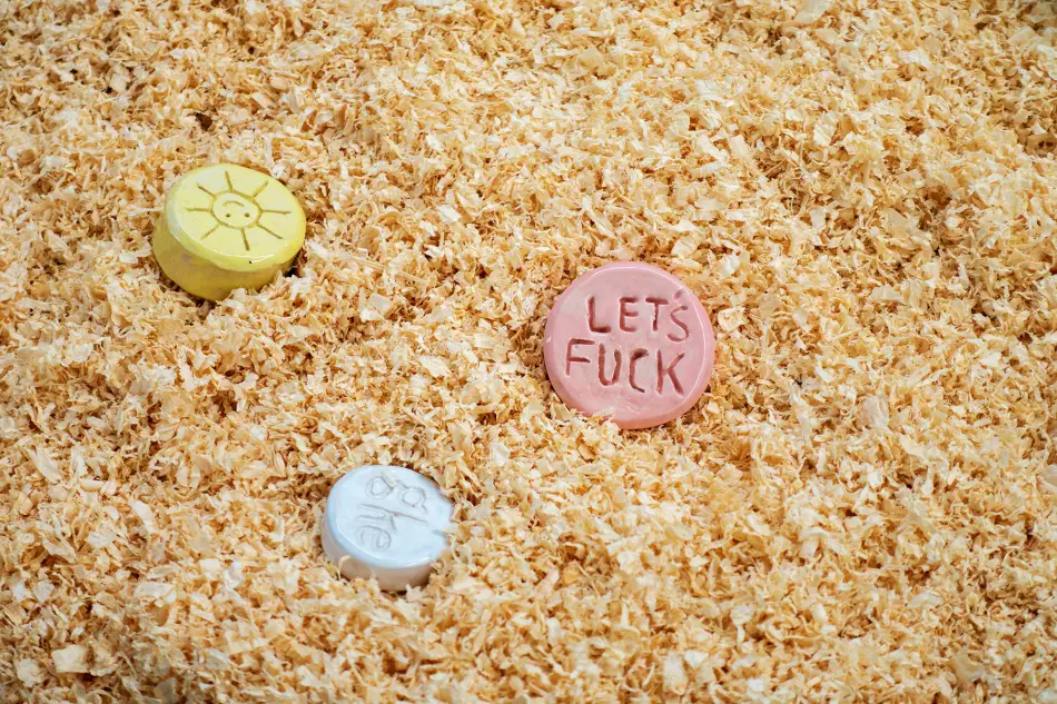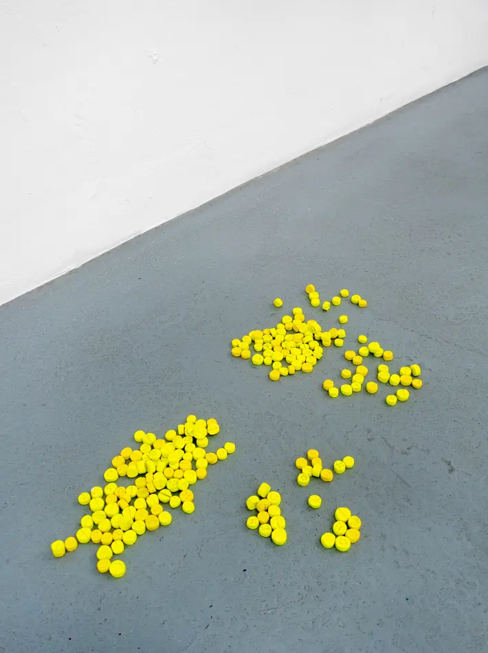 Sacrément Printemps, 2019fat balls, wood, and nails60 x 20 x 13 cm