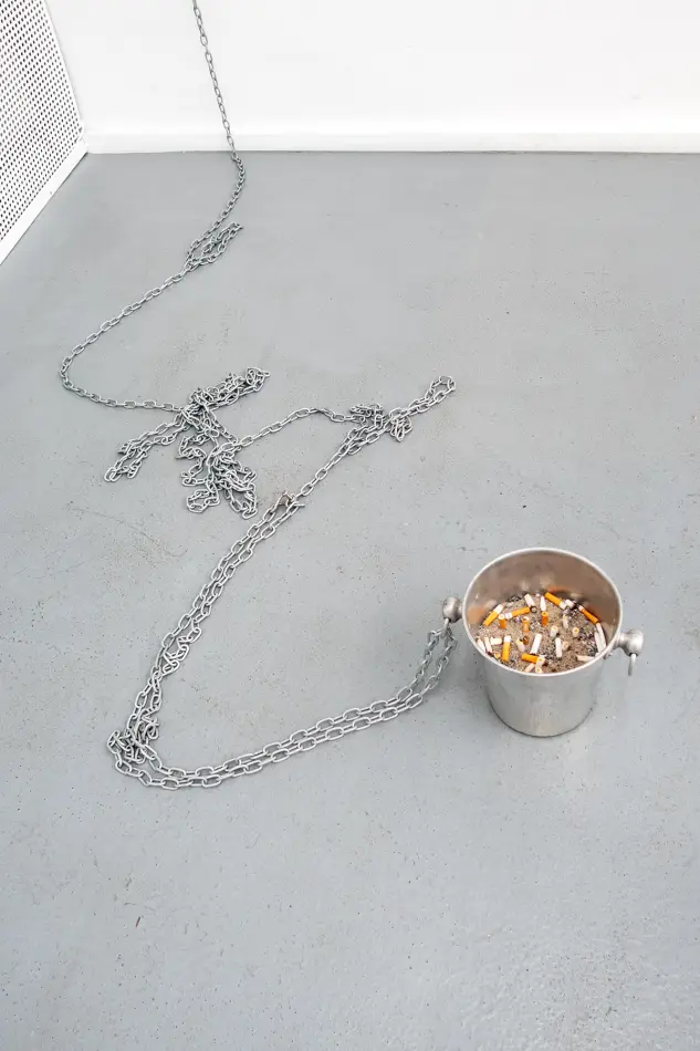 Kühler, 2023champagne cooler, sand, cigarette butts, chaindimensions variable