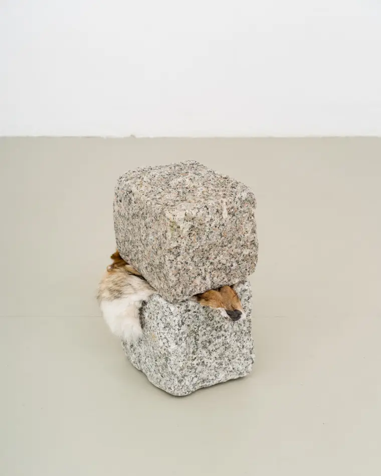 Koyotenquetsche, 2025cobblestone, fur head33 x 28 x 26 cm, ed. of 2 + 1 AP