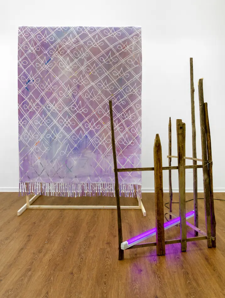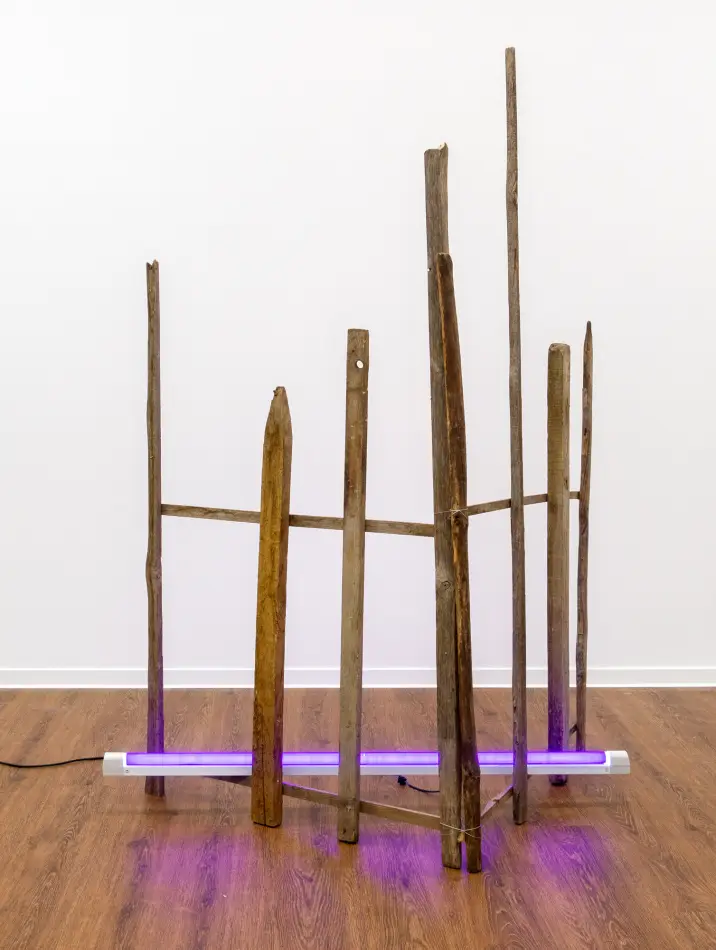Lichtfalle Ultraviolett, 2021wood and neon lamp177 x 88 x 85 cm