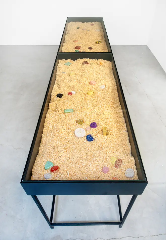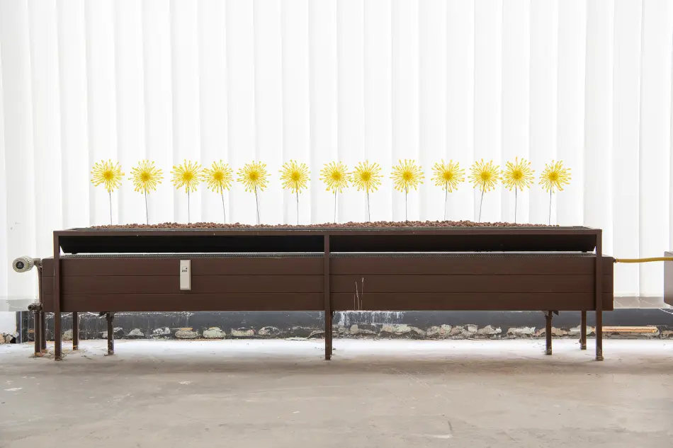 Autonomie, 2021plastic, metal, sunflower seeds, and stonesdimensions variable