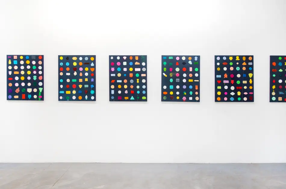 Schutzmaßnahme, 2022salt, shot glasses, painted ceramicsdimensions variable