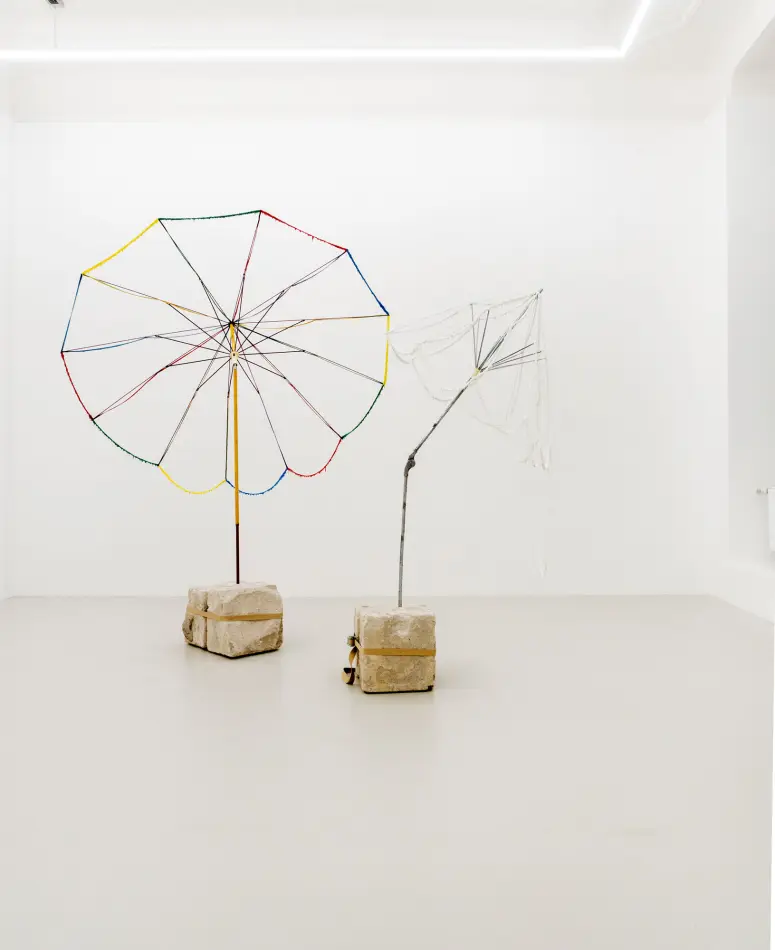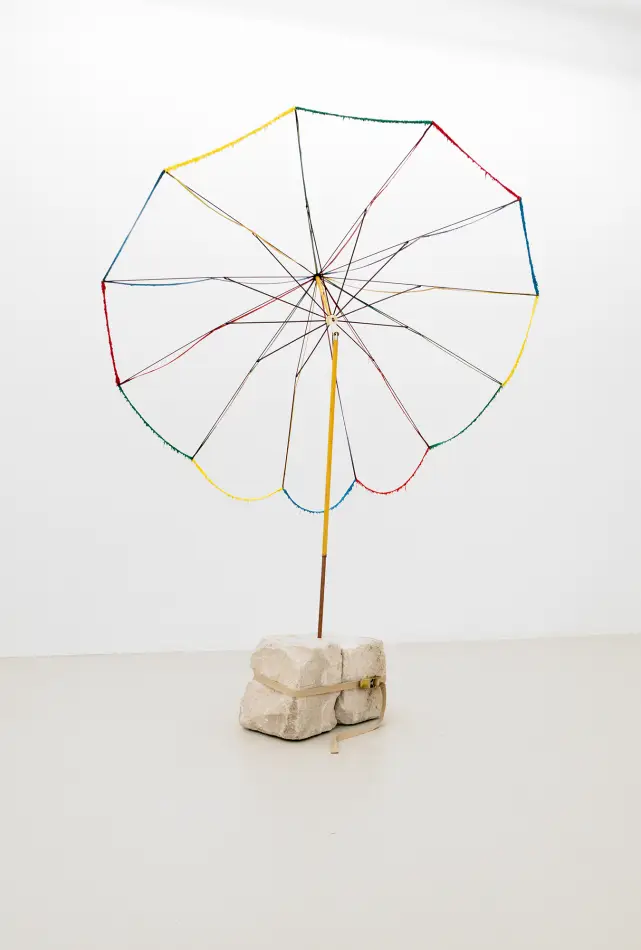 Parasol 1, 2024parasol, oil, concrete, ratchet213 x 113 x 159 cm