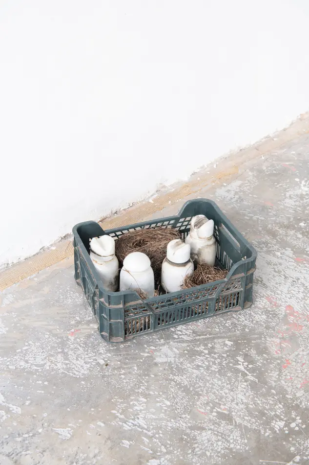 Untitled, 2021plastic crate, nests, and insulators39 x 30 x 16 cm