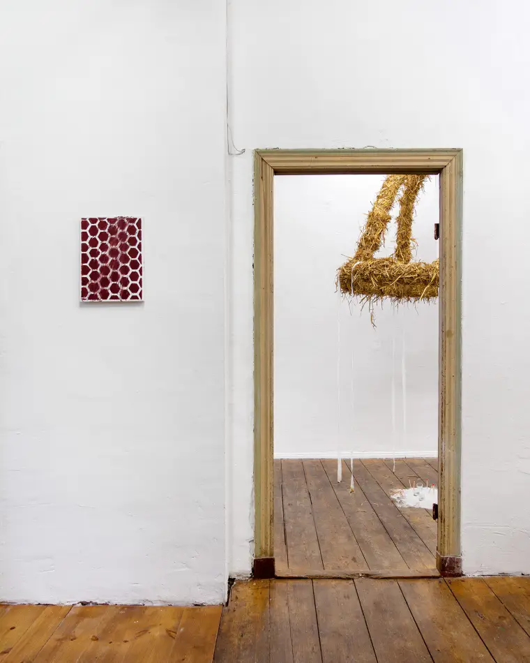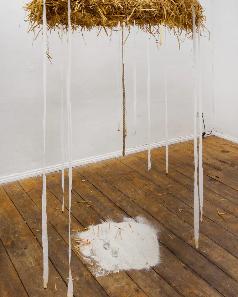 Wohlstand und Sesshaftigkeit, 2022straw, willow branches, and fabric170 x 120 x 90 cm