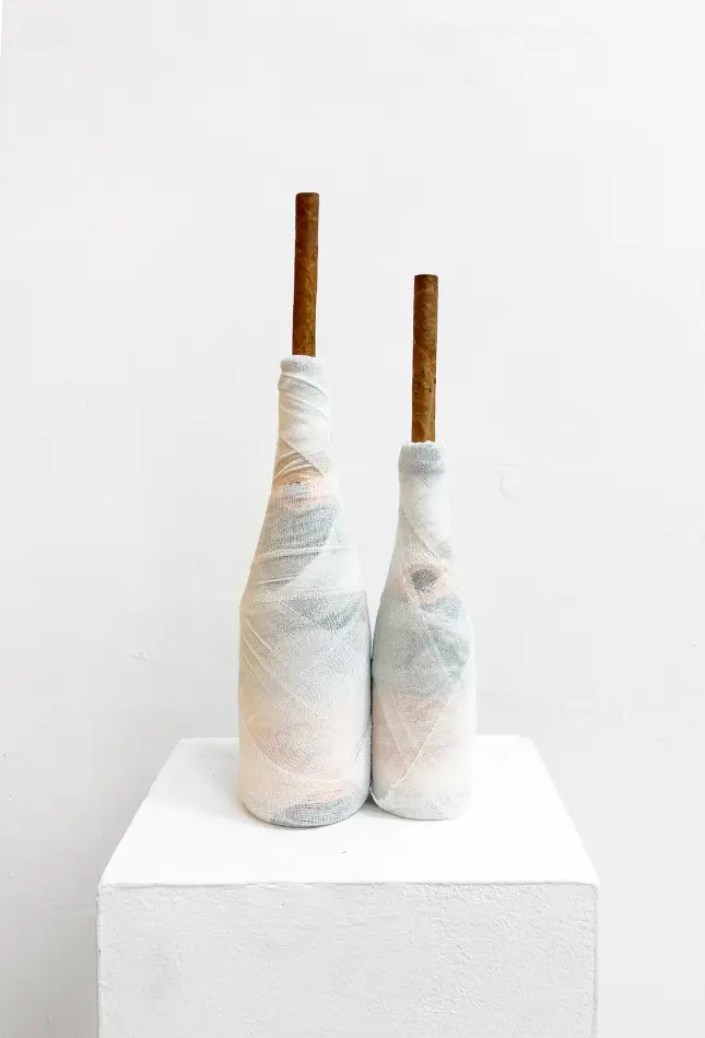 Molli II, 2021Veuve Clicquot, gauze bandages, cigars37 x 32 x 36 cm